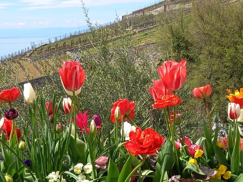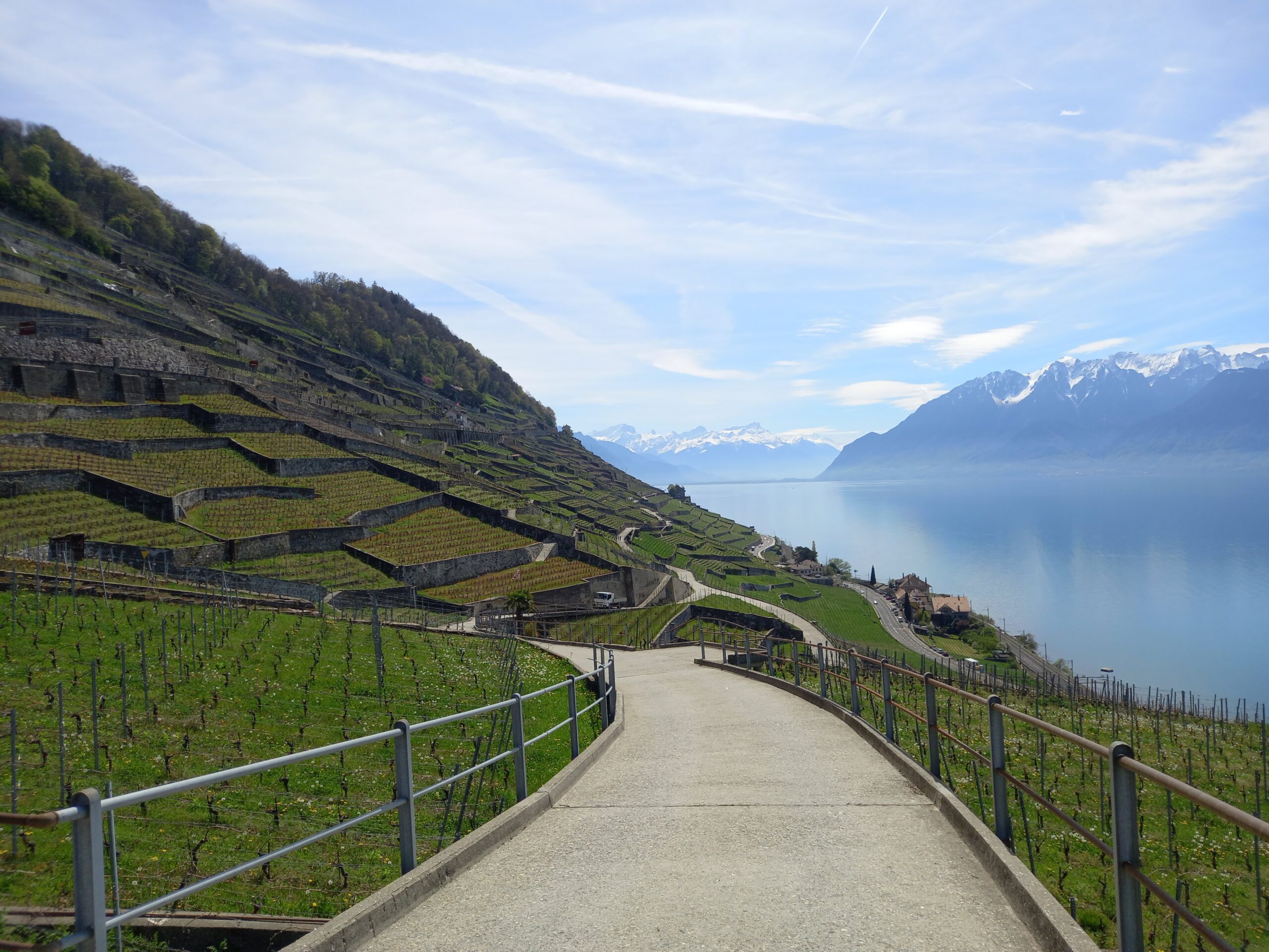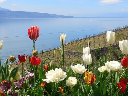 Fascinés par le paysage époustouflant, nous avons marché plusieurs heures, dans ce vignoble de Lavaux, face à la chaine des Alpes enneigée,en bordure du Lac Léman, traversant des villages pittoresques, rencontrant d’autres randonneurs tout aussi émerveillés que nous. Une très belle journée !