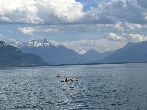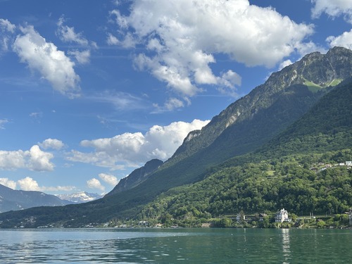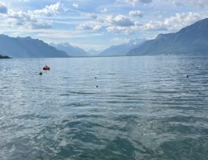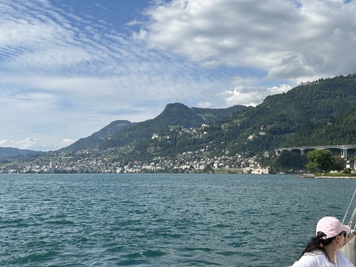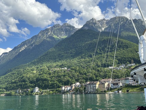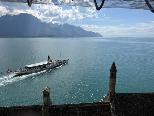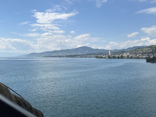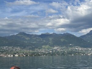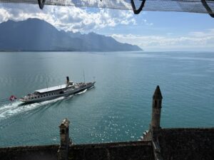 Nous avons repris le bateau pour repartir sur Vevey : une croisière d’une bonne heure, au soleil sur le pont, dans un cadre magique !