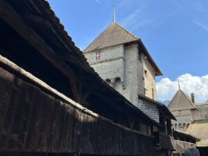 Ce que j’ai le plus apprécié lors de la visite du château de Chillon est le fait de pouvoir se promener sur le chemin de ronde, d’admirer les vues magnifiques sur le lac Léman mais aussi sur la cour intérieure et l’ensemble des bâtiments. Grimper en haut de la tour de garde fut aussi un beau moment.
